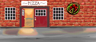 After the call, make your way back to the pizza place, where Agnes is nowhere to be found.